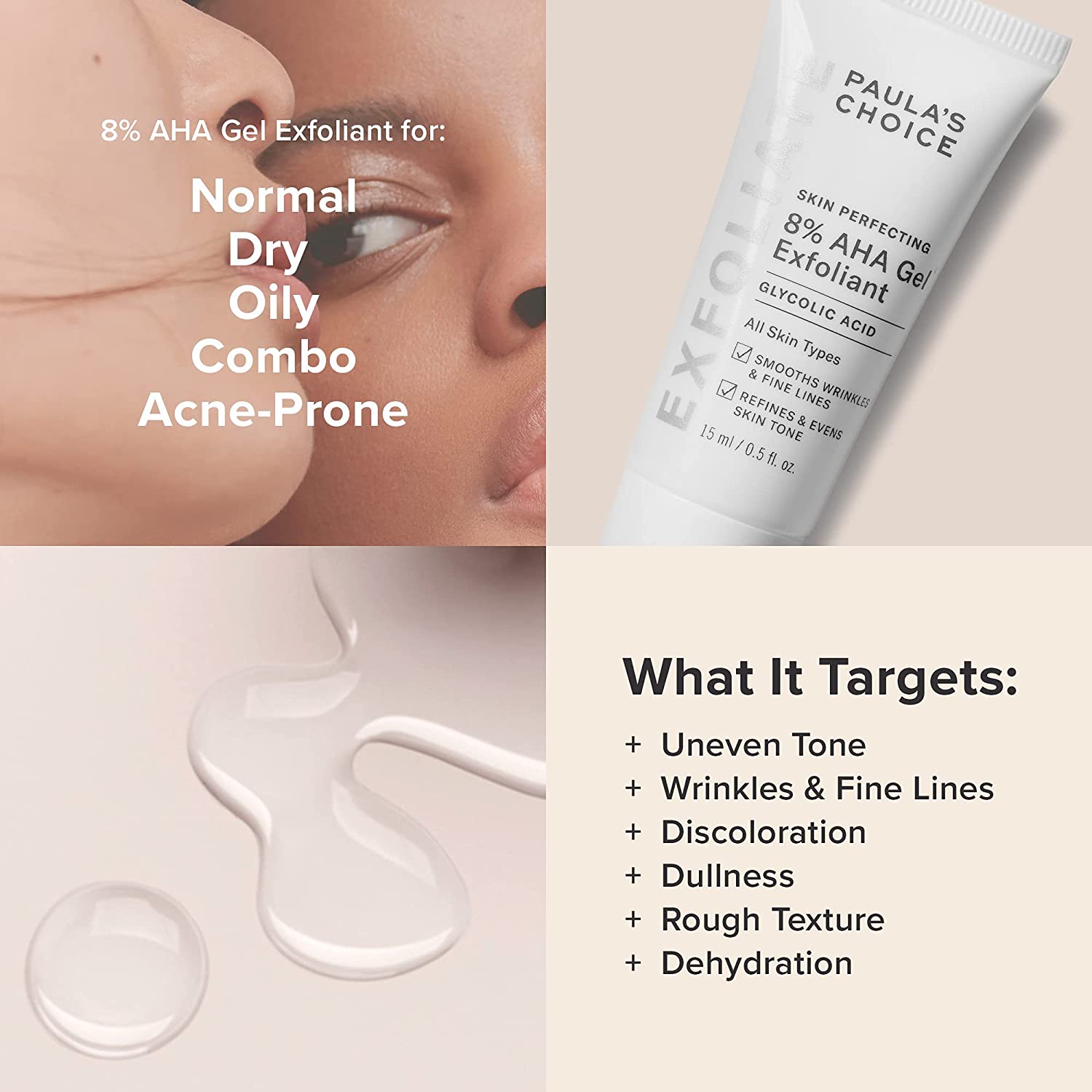 ژل لایه بردار غنی شده با ۸ درصد AHA (گلیکولیک اسید) برند پائولایز چویس حجم ۱۵ میل
